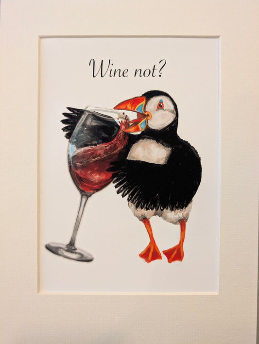 Mounted Wine Not Puffin Print (White Wine)